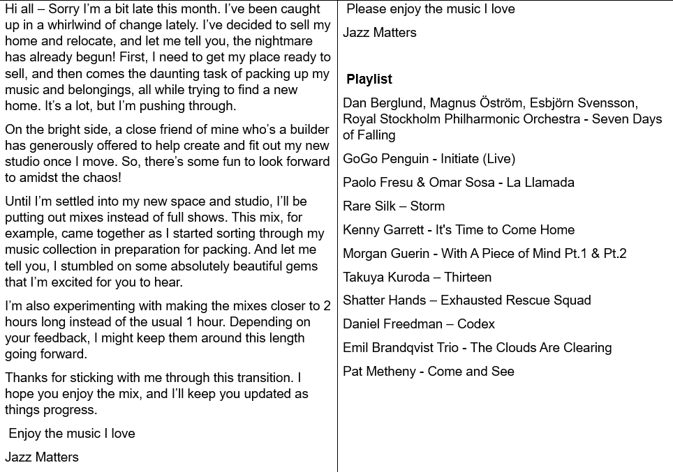 2025 is a year of big changes at Jazz Matters. I'm creating a brand-new studio and preparing for a full digital relaunch on 1st May 2026. From then on, every Jazz Matters podcast, mix and special will stream from this website.